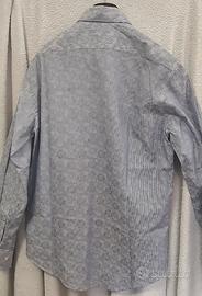 Meravigliosa camicia da uomo Pal Zileri Concept con fantasia cangiante a righe e fiori in sottofondo blu/bianco, nuova mai indossata taglia 40 - 15 1/2