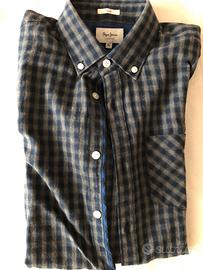 Camicia Pepe Jeans a quadri blu e grigio, taglia S slim, indossata solo una volta.
