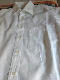 Vendo camicia bianca a manica lunga con bottone, in ottimo stato, per uomo, in puro cotone, con un taschino applicato sul petto, firmata G.B.SPORTELLi. Abbottonatura frontale con bottoni. misure collo 16 e mezzo 42. Taglia grande