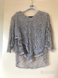 Camicia Pezzi Pazzi moda Positano ricamata damascata azzurro/grigio polvere -viscosa 100% larghezza spalle cm 40 – lunghezza cm 60 – spalline con imbottitura -taglia 44