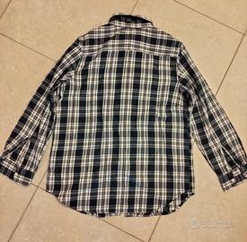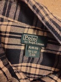 Questa camicia è un modello classico Polo Ralph Lauren in flanella di cotone, caratterizzato da una fantasia a quadri (plaid) nei toni del blu navy e crema. Presenta elementi distintivi come: Design: Doppie tasche sul petto con chiusura a bottone e bottoni bianchi a contrasto. Materiale: Realizzata in 100% cotone spazzolato, che le conferisce la tipica morbidezza della flanella. Vestibilità: I modelli vintage o "Classic Fit" offrono un taglio comodo, ideale per un look casual a strati. Taglia XL per ragazzo