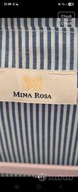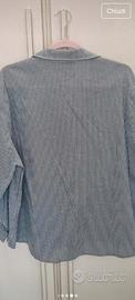 Camicia a maniche lunghe con un design a righe blu e dettagli ricamati. Taglia XL . Spalle cm 46 torace cm 68, lunghezza cm 66. Mai indossata .