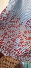 Bellissima blusa estiva Marina, taglia a quadri blu e rossi. Dettagli con ricamo floreale rosso. - Modello a maniche tre quarti. - Vestibilità comoda. - ascelle cm 60, lunghezza totale cm 74Ottimo stato.