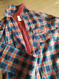Vendo camicia Hollister unisex taglia M, fantasia a quadri rossi e blu con dettagli verdi. In cotone, morbida e comoda, perfetta per la stagione autunno/inverno o per un look casual.