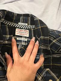 Camicia invernale a quadri tartan blu con bottoni perlati taglia s