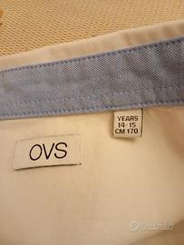 Camicia bianca ragazzo 14/15 anni (170 cm) OVS di cotone 💯%, con dettagli color azzurro sul colletto, polsini e fianchi, in perfette condizioni, praticamente nuova, è stata indossata un paio di volte. Misure: colletto 39 cm, spalle 41 cm, larghezza da ascella ad ascella 47 cm, lunghezza 71 cm.