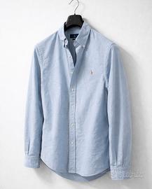 Camicia Oxford Ralph Lauren originale da uomo, modello Slim Fit, colore celeste.