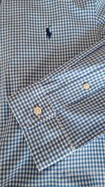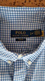 Camicia Ralph Lauren a quadretti azzurri, taglia L, slim fit, NUOVA (mai portata causa taglia sbagliata).