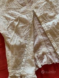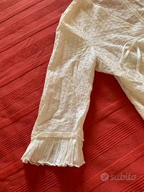 Camicia bianco sporco, scollo a V con gancetti sul davanti. Manica a tre quarti. 100% cotone.taglia 42