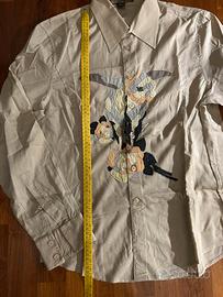 Camicia originale Roberto Cavalli da uomo, colore beige con ricamo decorativo sul davanti.