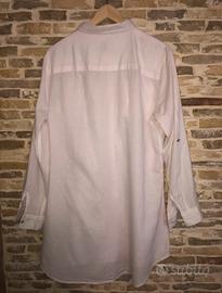 Bellissima camicia a maniche lunghe color rosa pastello di Primark. Il tessuto è leggero e traspirante (effetto lino/cotone). Dettagli del capo: Taglia: M (IT 42 / EU 38) Colore: Rosa pastello Caratteristiche: Doppia tasca frontale sul petto, bottoni argento, taglio leggermente più lungo sul retro