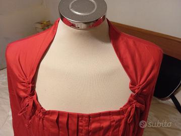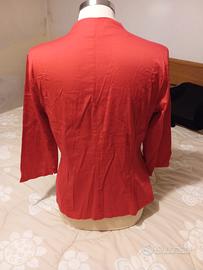 Camicia rossa con scollo particolare e pieghe piatte sul davanti. Maniche 3/4 senza bottoni. Naracamicie taglia III. 97% cotone e 3% elastan. Ottime condizioni
