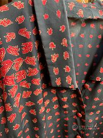 Simparica camicia taglia 50, ranocchie rosse su sfondo nero. Motivo taschino applicato in basso.