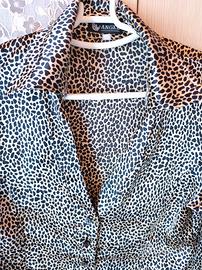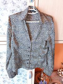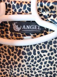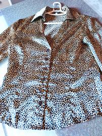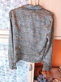 Splendida camicia Satinato/lucido ANGEL fantasia maculato/ghepardato/Leopardato .Tag S Ascelle 45 spalle 40 lunghezza 58 Colletto classico chiusura frontale con bottoni scuri Perfetta da abbinare pantalone nero elegante o Jeans