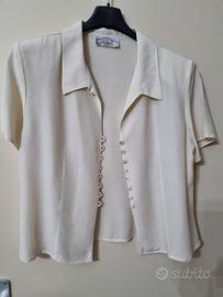 Camicia donna seta 100%. Indossata pochissime volte. Beige. Marca: La Chemise. E' una M. Purtroppo non ci sono le etichette con la misura perchè mia mamma le ha tagliate. Ma la camicia è molto carina, morbida ed elegante.