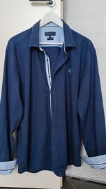 Vendo camicia Sir Raymond Tailor quasi nuova, indossata pochissime volte, in ottime condizioni. Taglia XXXL. Vestibilità regolare. Colore blu. Colletto, polsini e cannoncino di colore celeste. Logo sul petto sinistro. Cotone 100%. Misure: da spalla a spalla 54 cm, da ascella ad ascella 62 cm, lunghezza 75 cm, manica 68 cm.