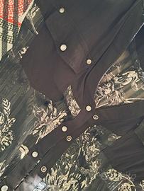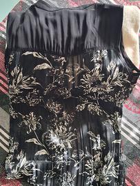 Camicia smanicata Koroshi nera e argento, nuova. E' taglia XS ma veste S. Bottoni a pressione madreperla. Stampa floreale e fili argento. Prezzo d'occasione.