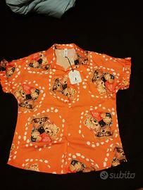 Camicia stampata donna maniche corte taglia unica colore arancione con orsetti