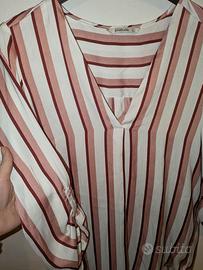 camicia a righe bianche e rosa della marca Stradivarius taglia M.