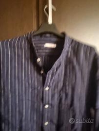 camicia misto lino cotone Sun 68 a righe con collo coreana