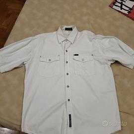 Privato vende , causa cambio look , una camicia bianca a maniche corte e dettagli perfetti come bottoni , ricamo sul taschino ed etichette e una tshirt Versace ORIGINALE con logo centrale in rilievo