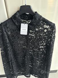 Camicia donna marca Tezenis, nuova con cartellino, taglia S, colore nero, maniche lunghe, materiale in pizzo. Prezzo 13€ .