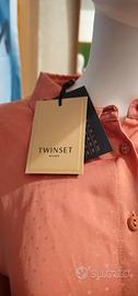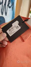 Camicia tg. 48, nuova, colore corallo con trama a pallini dello stesso colore della camicia. Tessuto in viscosa. Misure: da spalla a spalla, 40 cm. Da ascella ad ascella, 53 cm. Lunghezza manica, 69 cm. In vita da fianco a fianco, 52 cm. Lunghezza, 67 cm.