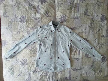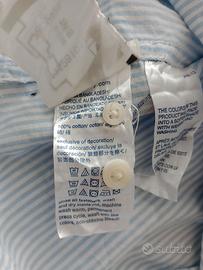 Elegante camicia in cotone 100% con raffinata trama a righe sottili e fantasia a scudetti ricamati all-over. Modello iconico e versatile, perfetto per un look casual-chic curato nei minimi dettagli. In ottime condizioni, vestibilità impeccabile e tessuto fresco di alta qualità. Un classico senza tempo che non può mancare nel tuo armadio!