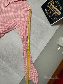 Colore rosa a quadretti bianchi, modello classico con bottoni frontali e colletto tradizionale. Tessuto leggero e traspirante, perfetto per un look quotidiano elegante e comodo.