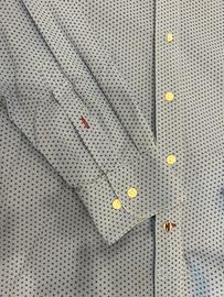 Vendo elegante camicia Tommy Hilfiger in cotone leggero, colore azzurro chiaro con micro-fantasia geometrica. Logo ricamato sul petto e dettagli tipici del brand.