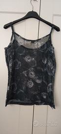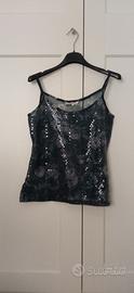 Canotta con paillettes davanti e camicia leggera con collo di paillettes