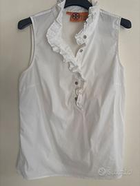 Vendo camicia Tory Burch, donna, modello leggermente sfiancato con scollo con volants sul davanti e chiusura con 5 bottoni logati, tg S come nuiva.