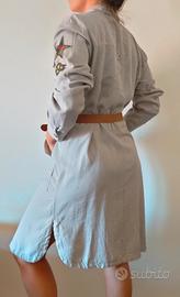 Camicia lunga al polpaccio, tunica vestito militare color beige chiaro, tg. S/M con bottoni Nuovo senza etichetta.