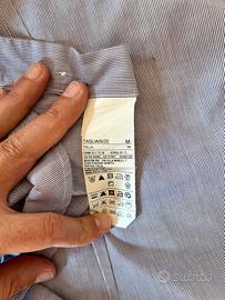 Camicia uomo usata, in ottime condizioni, a manica corta, taglia M, 100% cotone, a righe bianche e viola, vestibilità Slim-fit. Colletto classico, abbottonatura frontale