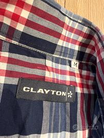 Camicia uomo a maniche corte Clayton, fantasia a quadri nei toni del blu, rosso e bianco. Chiusura con bottoni frontali e collo classico. Tessuto leggero e traspirante, perfetta per la stagione estiva. Vestibilità moderna e look casual. Taglia M. In ottime condizioni.