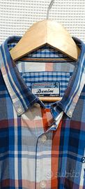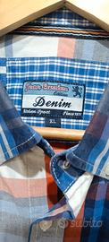Camicia uomo a quadri blu e arancione. Jean Carrie taglia XL - Maniche lunghe. - Collo button-down. - Taschino sul petto.