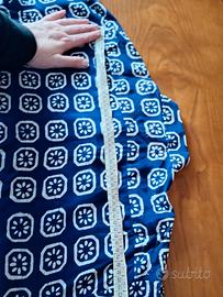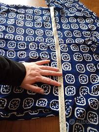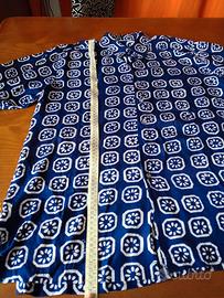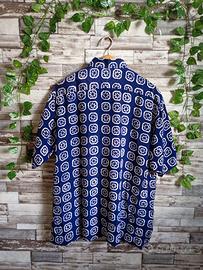 Camicia a maniche corte con taschino, in autentico batik, perfetta per un look vintage e unico. Taglia 18 ( corrisponde alla XXL), prodotta in Malesia. Motivo floreale blu e bianco, ideale per la stagione primavera/estate. In buonissime condizioni come da foto, manca il penultimo bottone. Misure, etichette taglia e composizione del tessuto visibili in foto.