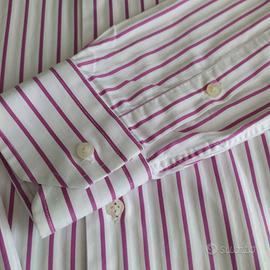 Camicia uomo bianca con righine Bordeaux, in puro cotone doppio ritorto