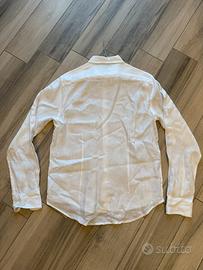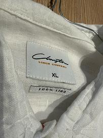 Camicia uomo bianca Elegante Clayton taglia XL in 100% lino, maniche lunghe con polsini abbottonati e collo classico. Chiusura frontale con bottoni. Stile semplice e raffinato, ideale per outfit casual o formali.