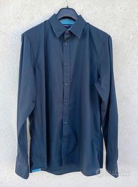Bellissima camicia uomo a manica lunga con chiusura bottoni frontali e sui polsini.✔️Il capo presenta un colletto e dei polsini con interno a contrasto di un azzurro più chiaro.✔️Questa camicia si abbina bene a pantaloni grigi, antracite,o chiari , oppure con jeans o sneakers per un look casual.✔️ Colore: Blu scuro.✔️Marca: Livergy.✔️ Composizione: 100% Cotone.✔️ Vestibilità regolare.✔️ Misure - Lunghezza maniche: 64 cm. Larghezza spalle ( Da spalla a spalla): 44 cm. Torace ( Da ascella ad ascella): 56 cm. Lunghezza (Dalla cucitura del collo al fondo): 76 cm. Taglia: M.✔️La camicia è in ottime condizioni.