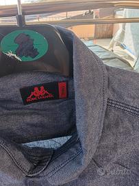Camicia uomo robe di kappa blu a manica lunga. Logo all' interno e sul polsino. Taglia small. Ampiezza spalle 42 cm e lunghezza 66 cm. La camicia facilmente rimborsa le maniche con la possibilità di fissare la parte rimborsata ad un bottone posto sulla manica stessa, così che resti ferma. Realizzata in cotone fresco e leggero. Molto confortevole da indossare. Quasi mai usata.