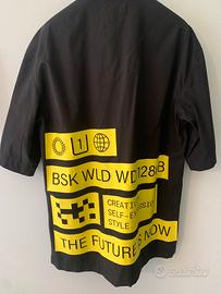 Vendo camicia uomo con stampa manica corta in cotone colore nero stampa gialla, taglia S, indossata pochissimo. Bershka.