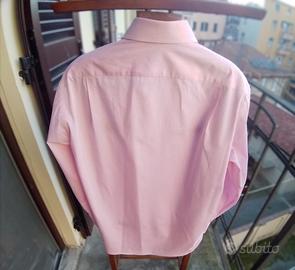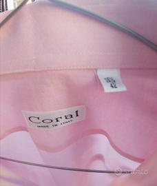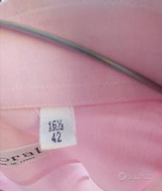 Elegante camicia sartoriale Coral, realizzata in Italia con cotone di alta qualità in una raffinata tonalità rosa pastello. Il capo presenta un design classico ed estremamente curato, ideale sia per contesti business che per occasioni formali. Collo: Italiano (semi-aperto), rigido e ben strutturato. Polsini: Smussati a due bottoni, che permettono di regolare la chiusura sul polso. Vestibilità: Classica/Regular. Taglia: 42 (EU) / 16 ½ (UK/US). Misure reali: Larghezza ascella-ascella: circa 60 cm. Lunghezza totale (retro): circa 78-79 cm. Condizioni: Eccellenti, tessuto fresco e resistente. English Elegant Coral tailored shirt, Made in Italy from premium cotton in a sophisticated pastel pink hue. This garment features a classic, sharp design, perfect for business attire or formal events. Collar: Italian (spread) collar, stiff and well-structured. Cuffs: Two-button mitered cuffs for an adjustable and polished fit. Fit: Classic/Regular fit. Size: 42 (EU) / 16 ½ (UK/US). Actual Measurements: Pit to Pit: approx. 60 cm Total Length (back): approx. 78-79 cm Excellent condition, high-quality and breathable fabric.