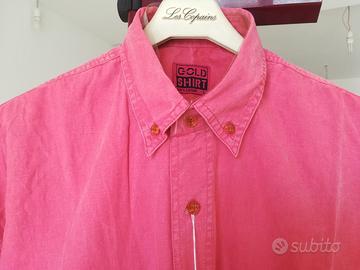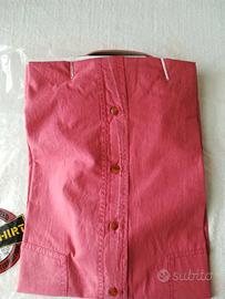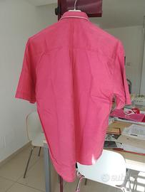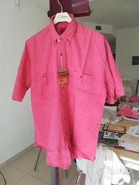 Camicia uomo maniche corte, collo botton down, 2 taschine con bottoncini, piega sotto carrè dietro; 100% cotone; colore rosa/corallo, giovanile. Tg L - 50-52 misure in cm: spalle 55, da ascella ad ascella 60, lunghezza77. Nuovo con cartellino, in confezione originale.