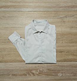 Camicia uomo Alta Tensione. Tessuto cotone e nylon, colore bianco. Taglio classico con colletto. Taglia XL.