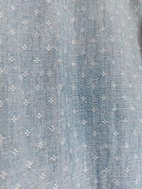 Azzurra con piccoli gigli ricamati in bianco