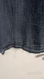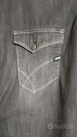 ELLISSIMA CAMICIA IN JEANS NERO DENIM MARCHIATA “GAS”, IN COTONE LEGGERMENTE ELASTICIZZATO, CON 2 TASCHINE PETTO CON BOTTONI E 3 BOTTONI SULLE MANICHE, EFFETTO USURATO, STROPICCIATO, TAGLIA XXL (MA VESTE COME UNA XL…….)LARGHEZZA TRA ASCELLE 60 CM.