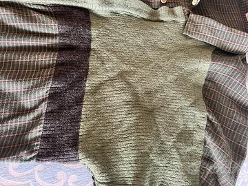 - Patchwork con inserti in tessuto a contrasto.