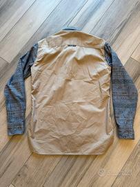 Camicia uomo Grand & Hills (OVS) taglia S a maniche lunghe con fantasia etnica su base grigio-blu. Dettagli a contrasto color beige su spalle, taschino e polsini.