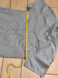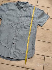 camicia a maniche corte azzurra,in cotone, chiusura con bottoni, taschino sul petto, taglia italiana 46, misure tra le foto